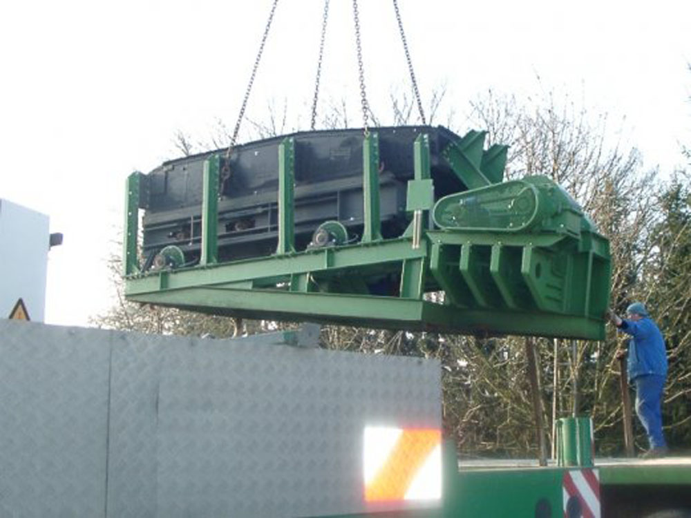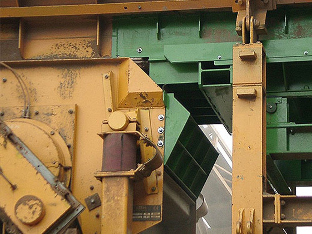 Übergabesituation von dem neuen Schubwagen in die vorhandene Prallmühle
